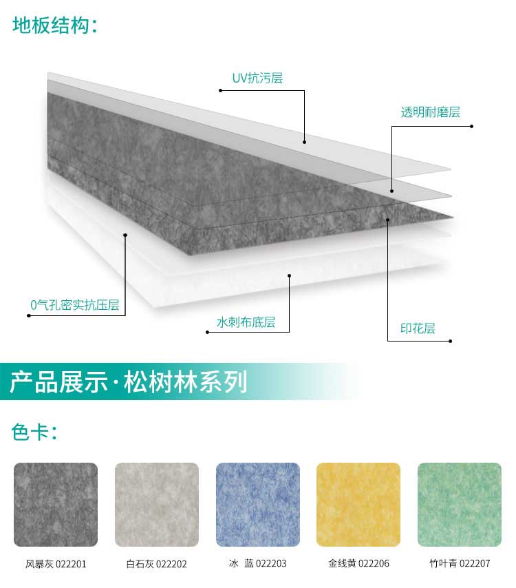 安耐寶pvc地板只用全新料,不用回收料,一點也不用。適用于醫院、學校、辦公室、商場超市、工廠車間等公共空間老人、兒童也同樣可以使用。